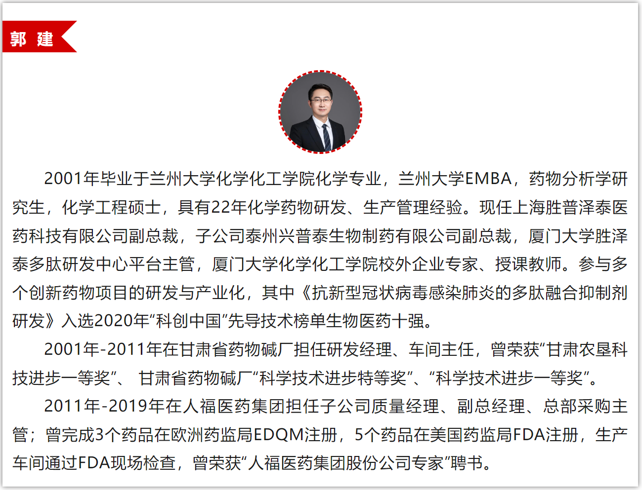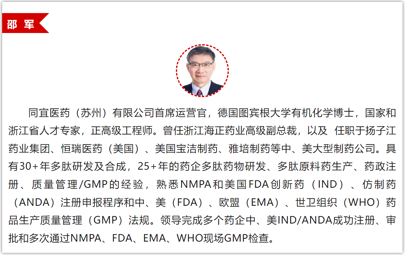 11:10-11:40 | 吳海剛 | 多肽API供應(yīng)鏈的機遇和挑戰(zhàn) | |