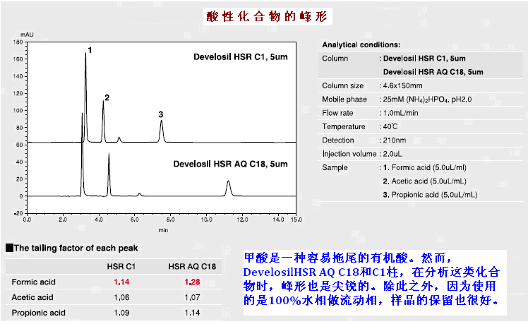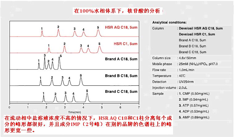 HILIC模式的柱子,但是,我們可能更傾向于在分析的時候用類似的反相柱。因此,Develosil HSR AQ C18C1柱,應運而生!