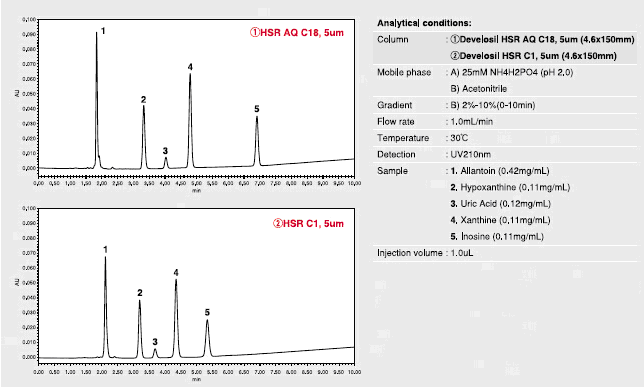HILIC模式的柱子已經有很多對極性化合物有良好保留的案例,但是,請嘗試一下DevelosilHSR系列色譜柱,你會發現這一系列柱子優秀的的耐用性以及作為反相柱的便捷性。