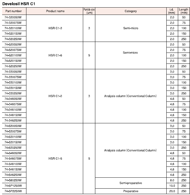Develosil HSR系列色譜柱,在很多領域,比如醫藥、食品以及環境領域,均有很多有價值的數據可供參考。