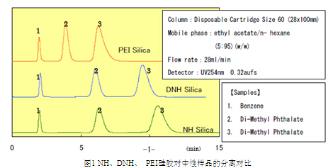 PEI是在球形硅膠表面鍵合大分子的氨基多聚物。富士的NH和DNH硅膠在分析和工業(yè)領域有著廣泛的應用,主要用于分離堿性化合物,而這些堿性化合物在裸硅膠上會吸附的很嚴重。