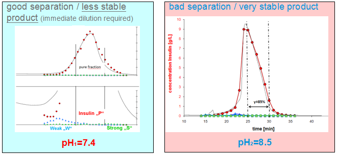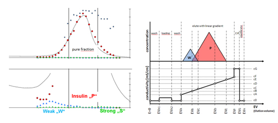 L.Aumann等通過Batch工藝,得出在胰島素精純時目標產物與雜質的分布特點。