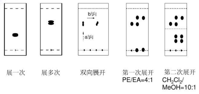 Note:a. 展開(kāi)之前要將溶劑吹干