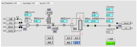 層析系統(tǒng)軟件符合新版GMP規(guī)范,采用圖形化界面、全自動(dòng)操作,簡明扼要,任何操作及狀態(tài)均可實(shí)時(shí)顯示在主界面狀態(tài)欄中,自動(dòng)化程度高。結(jié)合了大量的容錯(cuò)性設(shè)計(jì),貼合生產(chǎn)實(shí)際,降低了對(duì)研發(fā)人員的技能要求。