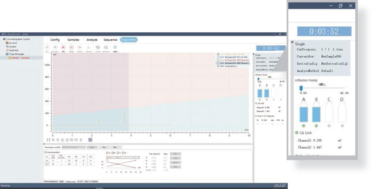 Hp-3000 chromatographic workstation is specially developed for the customers of preparation and purification. It well integrates instrument control and spectrum processing. The overall interface is simple and clear at a glance. In view of the requirements of preparative chromatography, some tedious spectral processing functions are removed to make it more suitable for preparative chromatography.